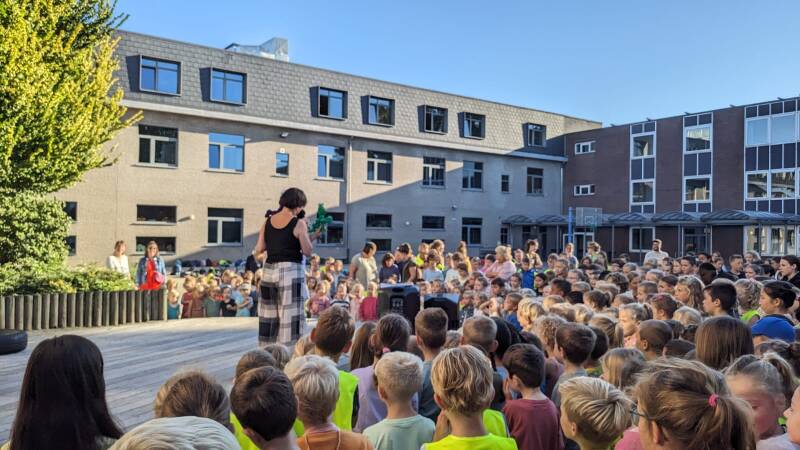Tijdens onze inkijkavond op donderdag 28 augustus openden we officieel onze 3de natuurspeelplaats, het klauterwoud. De harmonie werd uitgenodigd en samen met hen zorgden de vele aanwezigen voor een mooie en gezellige opening. Mevrouw Lieve gaf een mooie speech en daarna mochten de aanwezige kinderen het lint officieel doorknippen. Dank aan iedereen die erbij was! De gazet van Antwerpen kwam langs en schreef hierover volgend artikel. Een prachtige avond en een volgende stap in onze vergroening. Het mooiste van dit alles? We zijn er nog altijd niet. Er komt nog heel wat leuks aan... .